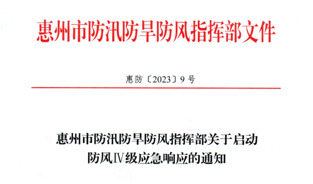 目前惠州啟動(dòng)防風(fēng)Ⅳ級應(yīng)急響應(yīng)