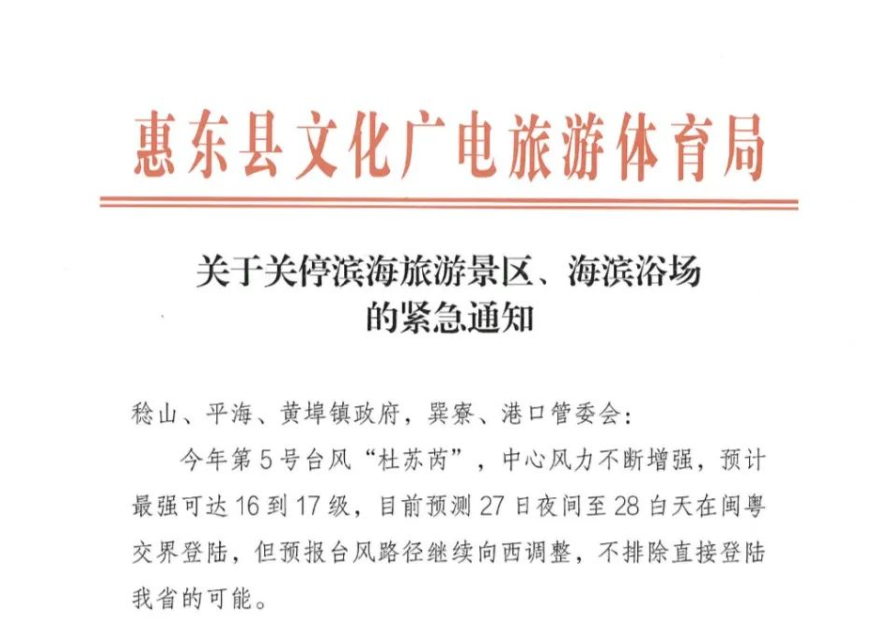 鑒于臺風(fēng)“杜蘇芮”的發(fā)展趨勢