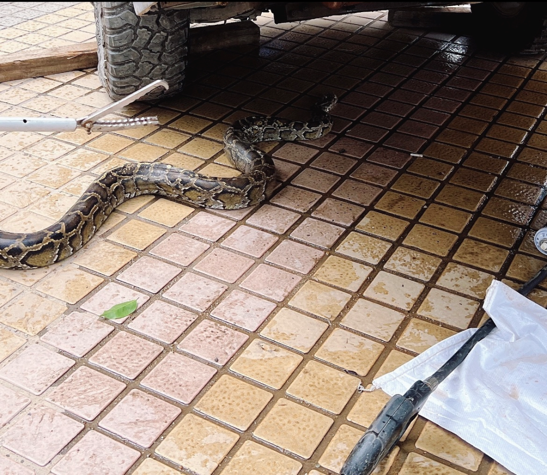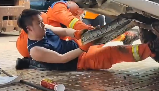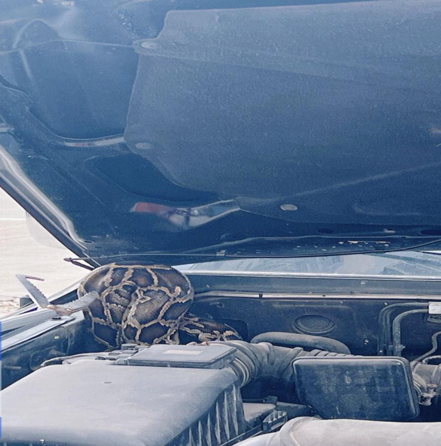 一條蟒蛇在引擎艙內(nèi)躲著不出來