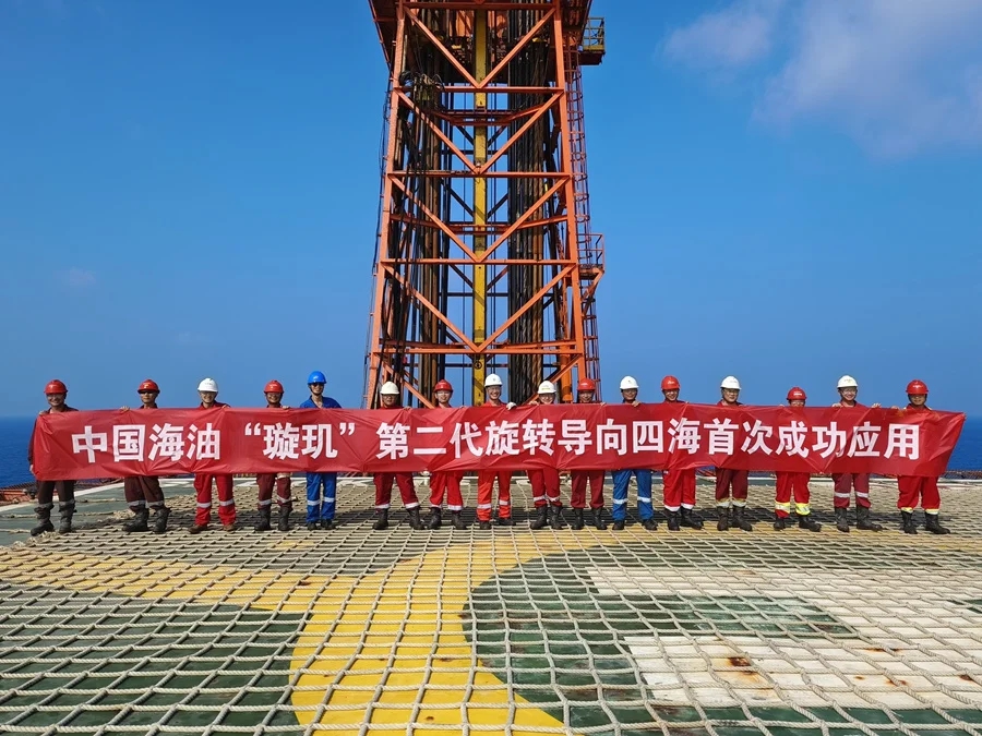 現(xiàn)場(chǎng)作業(yè)人員應(yīng)用“璇璣”2.0旋轉(zhuǎn)導(dǎo)向順利完成海上施工作業(yè)后在平臺(tái)合影。