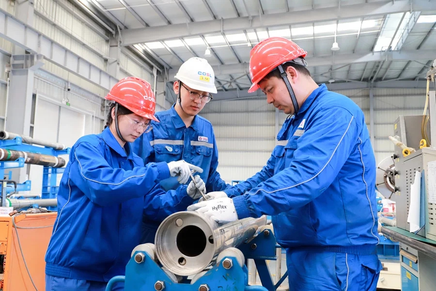 工程師在惠州維保車間維保組裝“璇璣”2.0旋轉(zhuǎn)導(dǎo)向。