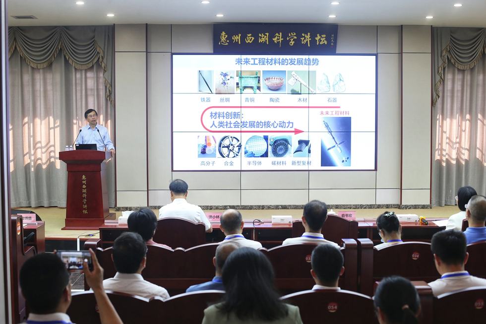 7月27日上午,惠州西湖科學(xué)講壇(第二十講)在豐湖書院澄觀樓舉行。中國科學(xué)院院士、南方科技大學(xué)創(chuàng)新材料研究院院長(zhǎng)俞書宏以“新材料創(chuàng)制與工業(yè)制造”為主題作專題報(bào)告,他結(jié)合自己的研究實(shí)踐,探討、講解面向未來和可持續(xù)發(fā)展的新材料創(chuàng)制中的瓶頸問題和新途徑,強(qiáng)調(diào)高水平人才、有組織的科研以及大科學(xué)裝置在新材料研發(fā)中的作用。