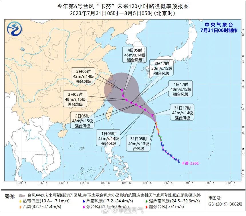 從目前形勢來看,雖然路徑還存在一定不確定性,但最大的可能還是于8月2日下午到夜間在浙江沿海登陸,登陸時(shí)可能達(dá)強(qiáng)臺(tái)風(fēng)級或超強(qiáng)臺(tái)風(fēng)級(45-52m/s,14-16級)。