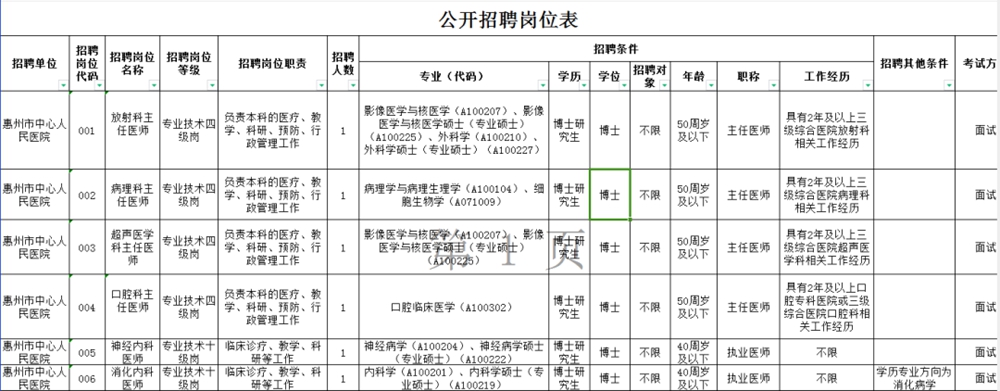 部分崗位信息一覽(圖源:惠州市衛(wèi)生健康局官網(wǎng)截圖)