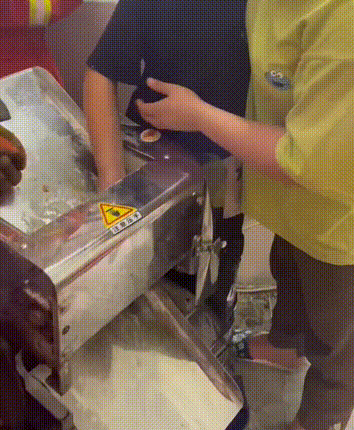 到達(dá)現(xiàn)場后,消防員發(fā)現(xiàn)男孩手掌被壓面機(jī)吞噬,導(dǎo)致手掌全面通紅。經(jīng)了解,男孩因貪玩誤把手伸進(jìn)壓面機(jī)器中,結(jié)果無法取出。
