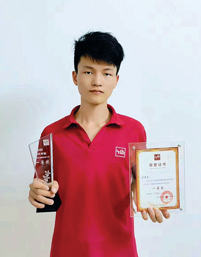 回憶起自己的技能學(xué)習(xí)之路,李海濤很是感慨。初中時他在家附近的一間私立學(xué)校上學(xué),班里學(xué)習(xí)氛圍不是很好,年少的他也不知道學(xué)習(xí)的重要性,中考自然沒有考出好成績。無緣高中,無奈選擇讀技工學(xué)校的頭一年,他整個人都處在頹廢狀態(tài)。事情的轉(zhuǎn)機出現(xiàn)在一次全國技能大賽的宣傳活動上,當看到技能也可報國時,李海濤的心被徹底點燃。當時學(xué)校正組建廣東省第二屆職業(yè)技能大賽集訓(xùn)隊,李海濤馬上報了名。當時他所在專業(yè)2個班有40多名同學(xué)報名,經(jīng)過一輪輪的淘汰選拔,最終只有李海濤留到最后。“記得那時候因為疫情學(xué)校還沒有復(fù)課,我整整半年沒有出學(xué)校,一直在為比賽作準備。”