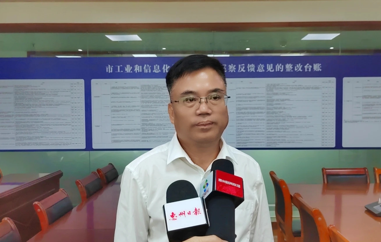 市工業(yè)和信息化局總工程師陳紅旗接受惠州日報記者采訪。