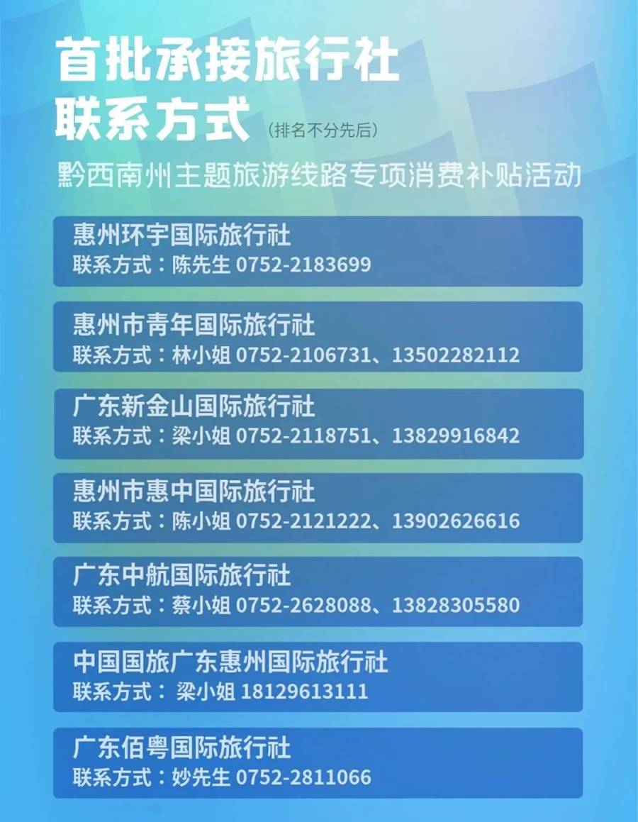 惠州開展黔西南州主題旅游路線專項消費補貼活動