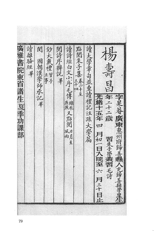 楊壽昌在廣雅書院的夏季功課嚴(yán)藝超 翻拍
