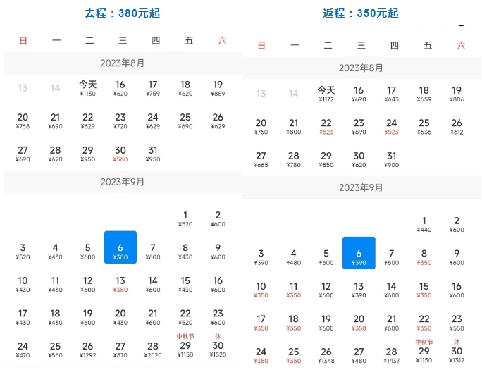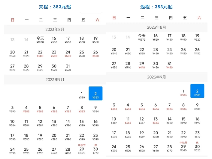 注:下述截圖時(shí)間基本在8月15日下午15:20前后,數(shù)據(jù)均來(lái)自攜程,因機(jī)票變動(dòng)較快,大家購(gòu)票請(qǐng)以實(shí)際為準(zhǔn)!