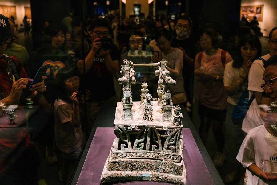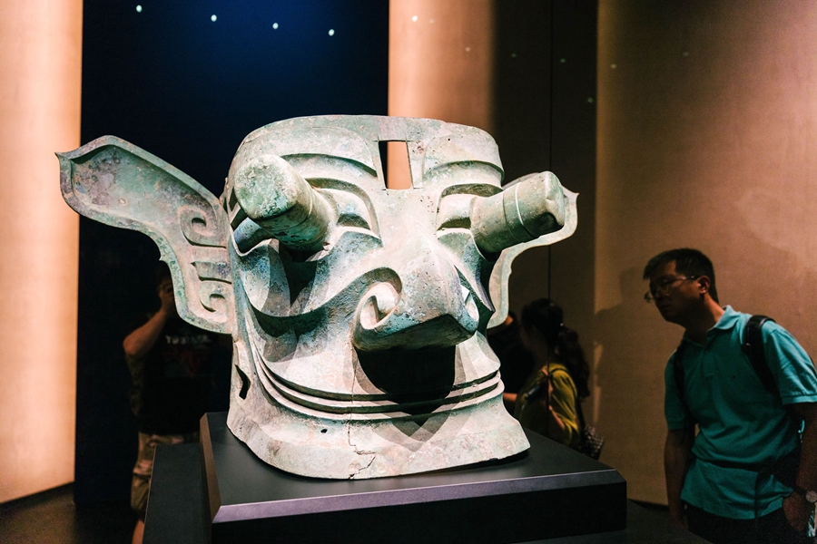 新館上新文物是最大亮點。此次新館開放,除了能看到青銅神樹等1986年出土的珍貴文物,還有600余件文物是首次和觀眾見面。6座新發(fā)現(xiàn)祭祀坑出土的300多件珍品,如3000年后再合體的青銅鳥足神像、“月光寶盒”青銅龜背形網(wǎng)格狀器、“出道即出圈”的扭頭跪坐人像、虎頭龍身像等重器悉數(shù)亮相。