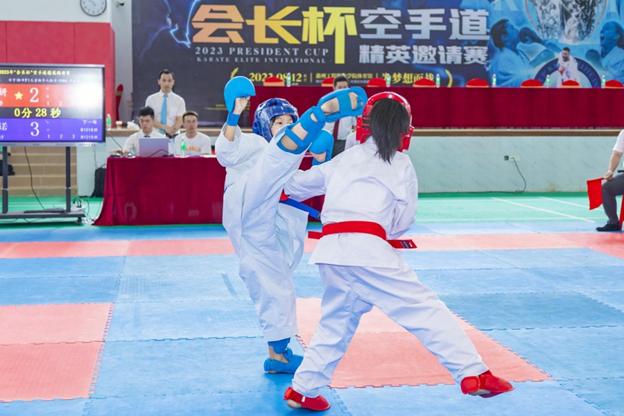 惠州日報訊 (記者譚琳)惠州市2023年“會長杯”空手道精英邀請賽日前在惠州工程職業(yè)學院體育館舉行,全市近130名運動員參加了幼兒組、兒童組、少年組、青年組和成年組的比賽。本次比賽采用世界空手道聯(lián)盟2022年最新版本比賽規(guī)則,經過1天400多場次的角逐,最終決出組手與型各組別49個級別的比賽前八名。