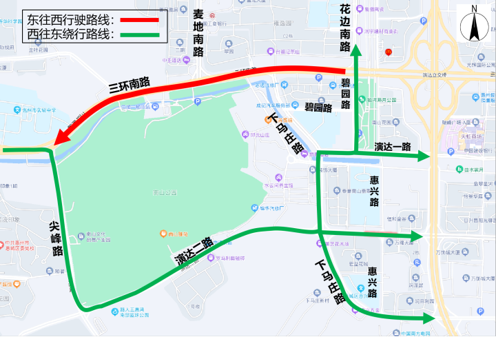 三環(huán)南路及其周邊道路交通組織調(diào)整示意圖。