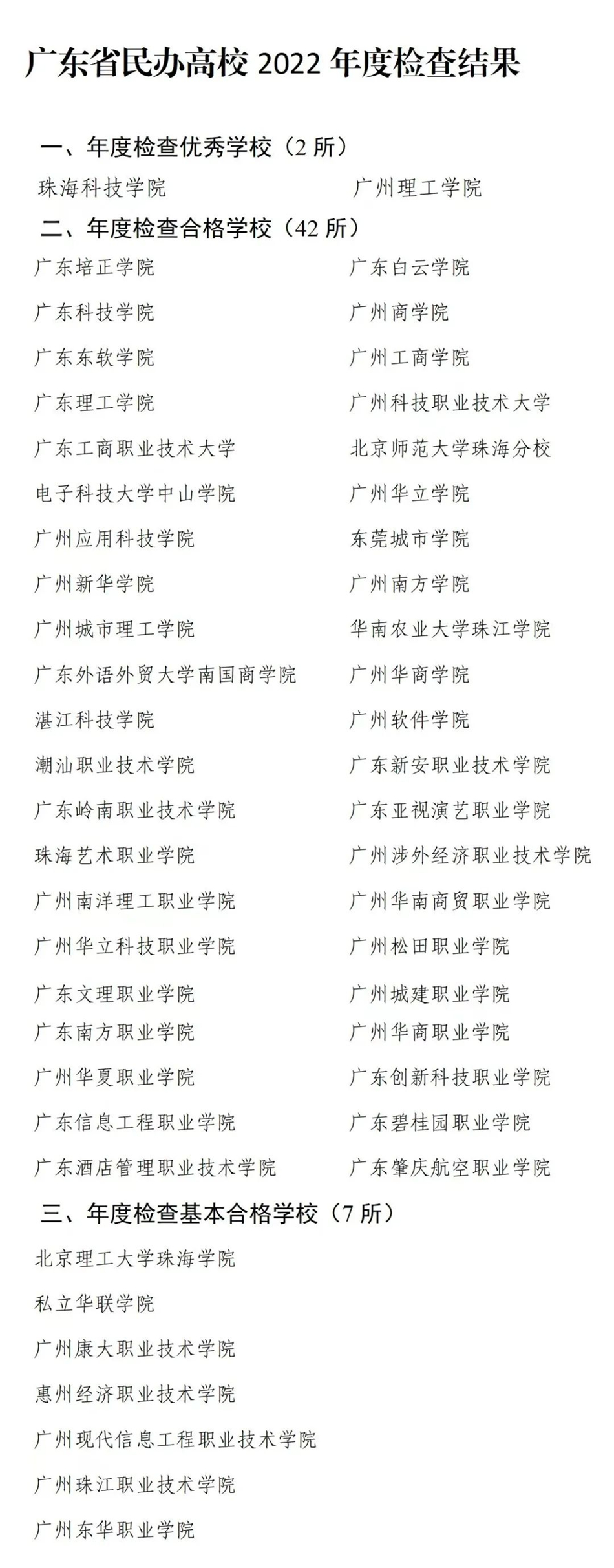 廣東省民辦高校2022年度檢查結(jié)果