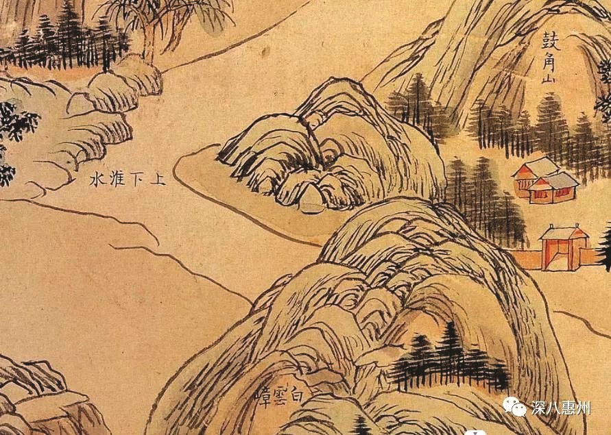 清康熙輿圖的上下淮水與鼓角山。嚴(yán)藝超翻拍