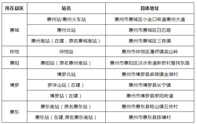 惠州各大高鐵站盤點(參考)