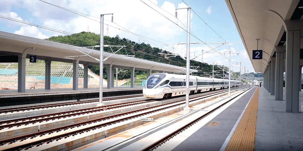 廣汕高鐵聯(lián)調(diào)聯(lián)試的車輛通過惠州南站。惠州日報記者王建橋 攝
