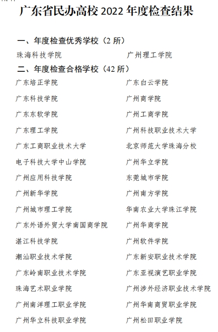 根據(jù)《廣東省教育廳關于民辦高等學校年度檢查實施辦法(試行)》,民辦高等學校(含民辦普通高校和獨立學院)均應接受年檢。年檢的主要內容為黨建與思想政治工作、辦學條件、學校法人治理、辦學行為、資產和財務管理、師生權益保障等。學校年檢結果與獎勵資助、招生計劃下達和單位評先評優(yōu)等掛鉤。