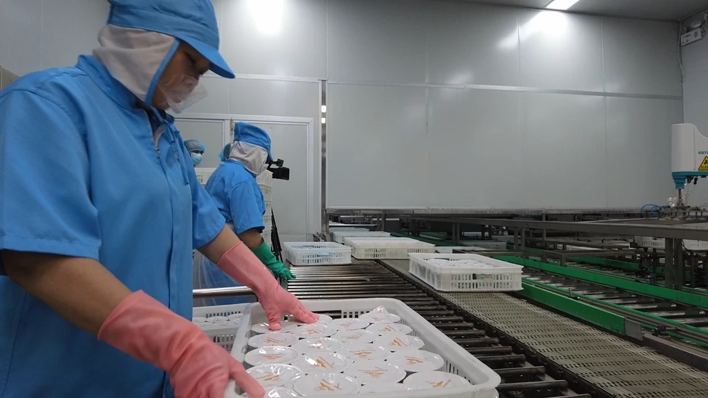 走進(jìn)客家婆豆腐花的現(xiàn)代化生產(chǎn)車間,自動(dòng)化流水線上機(jī)械臂左右騰挪,一杯杯客家婆豆腐花正源源不斷地生產(chǎn)出來(lái)。博羅羅浮山潤(rùn)心食品有限公司副總經(jīng)理李國(guó)惠介紹:“眼前的自動(dòng)化生產(chǎn)線在2021年正式投產(chǎn),目前最大產(chǎn)能可以達(dá)到每小時(shí)2.5萬(wàn)杯。”