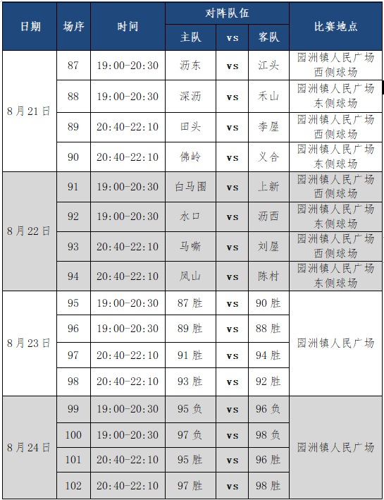 圖片注:如遇下雨改在園洲鎮(zhèn)守恒體育中心舉行,決賽日期待定。