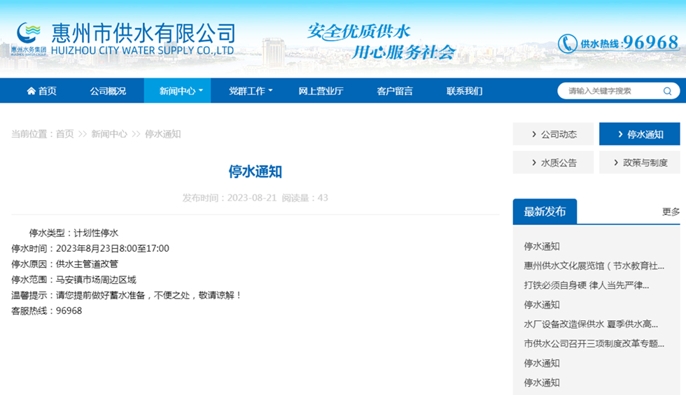 停水范圍:馬安鎮(zhèn)市場周邊區(qū)域