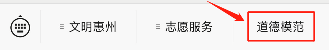 1.在“文明惠州”微信公眾號下方菜單欄,點擊【道德模范】。