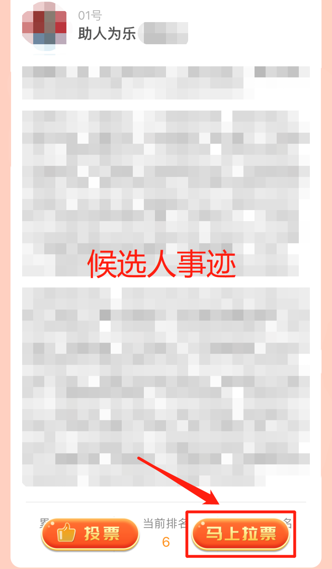 點擊投票頁面的候選人頭像,可查看候選人事跡,為候選人拉票。