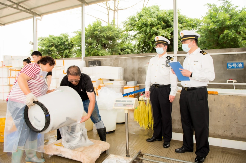 惠州海關(guān)關(guān)員對擬出口活鰻開展現(xiàn)場監(jiān)管作業(yè)。