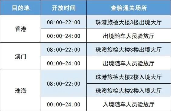 拱北口岸:6:00-次日1:00