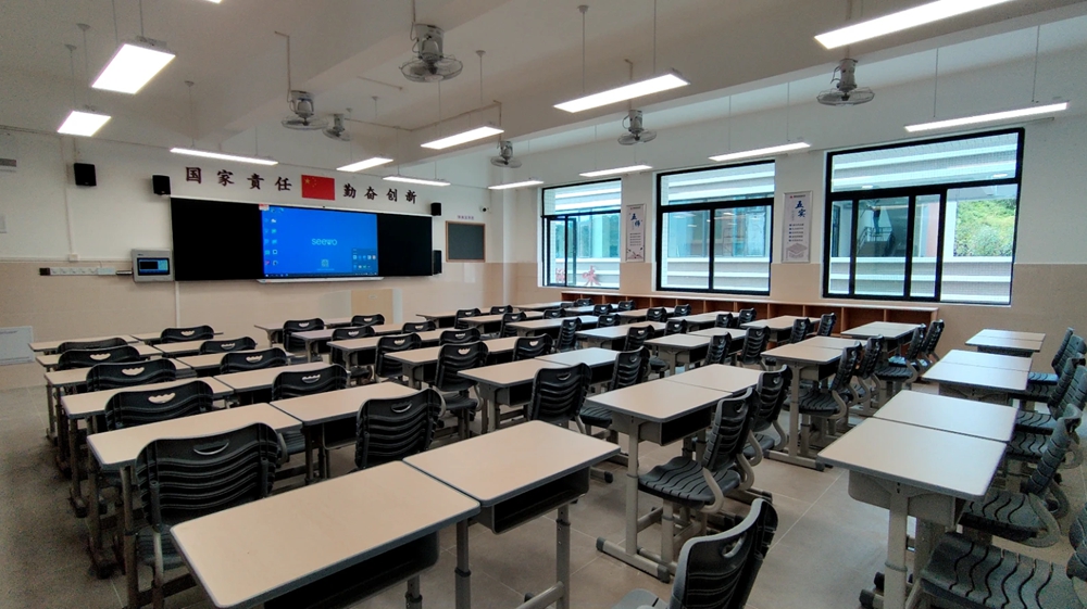 惠州市實驗中學北校區(qū)是市教育局直屬公辦寄宿制示范性重點高中分校區(qū),學校位于市區(qū)白鷺湖伊云美地,山環(huán)水繞,自然環(huán)境優(yōu)美。8月24日上午,記者來到惠州市實驗中學北校區(qū),校門兩側(cè)種植有象征市實驗中學“芒果精神”的芒果樹,拾級而上,寓意“面向全體學生,一個都不能少”的實全樓展現(xiàn)在眼前,這是學校的教學樓。全校占地面積2399平方米,總建筑面積2.8萬平方米,主要由1棟6層教學樓,1棟3層食堂,2棟8至9層宿舍樓組成。