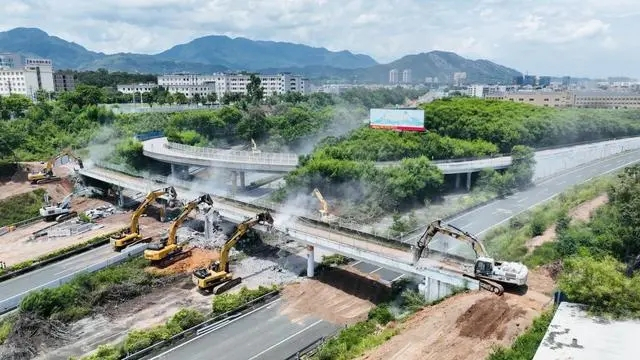 “我們多次召開專題會議,模擬演練拆除天橋的工序和細節(jié),不斷優(yōu)化施工及交通組織方案,最終選擇了最佳的機械鑿除方案。”項目負責(zé)人蘇高裕表示,現(xiàn)場加大資源投入,配置了大型設(shè)備200多臺,施工人員600多名。
