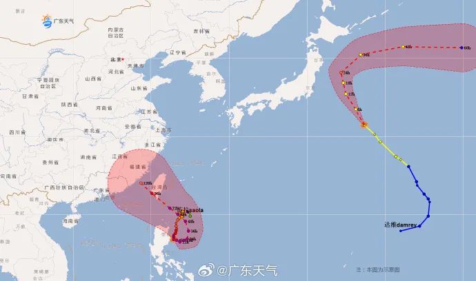 中央氣象臺(tái)預(yù)計(jì),“蘇拉”將先在菲律賓呂宋島東北部洋面徘徊,29日開始向西北方向移動(dòng),向臺(tái)灣島南部到巴士海峽一帶海域靠近,強(qiáng)度維持或有所減弱,將于30日夜間掠過臺(tái)灣島南部,并將于31日白天進(jìn)入臺(tái)灣海峽。