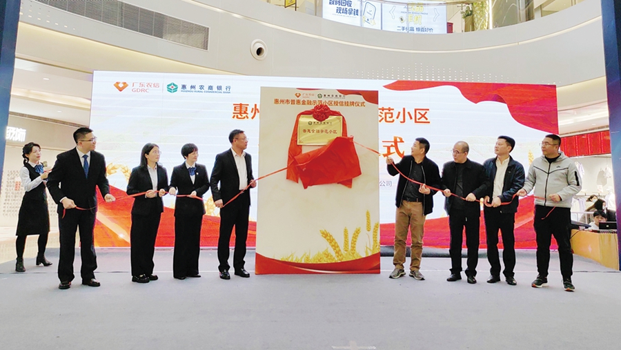 惠州農(nóng)商銀行與天益城舉行“普惠金融戶戶通示范小區(qū)”揭牌儀式。