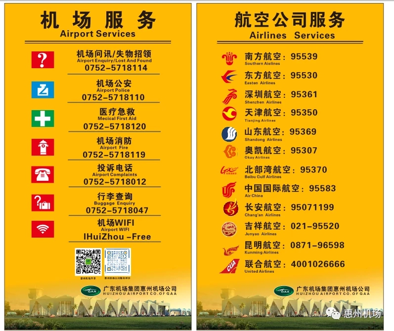 惠州機(jī)場及各航空公司服務(wù)熱線