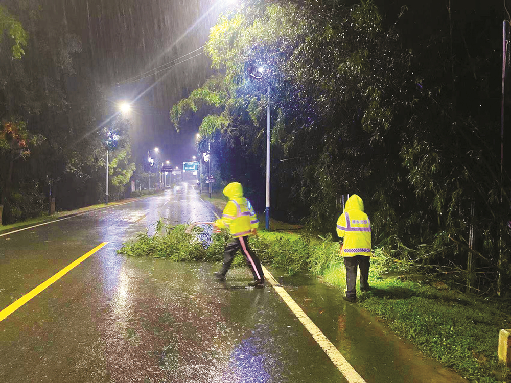 臺風(fēng)遠離后,惠東交警連夜冒雨上路巡邏并清理交通安全隱患。
