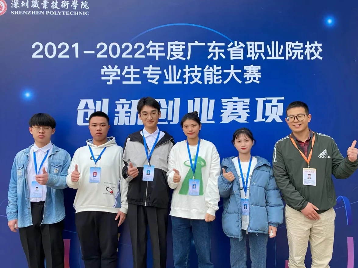 李政良(左二)與其團隊參加“廣東省職業(yè)院校學生專業(yè)技能大賽”