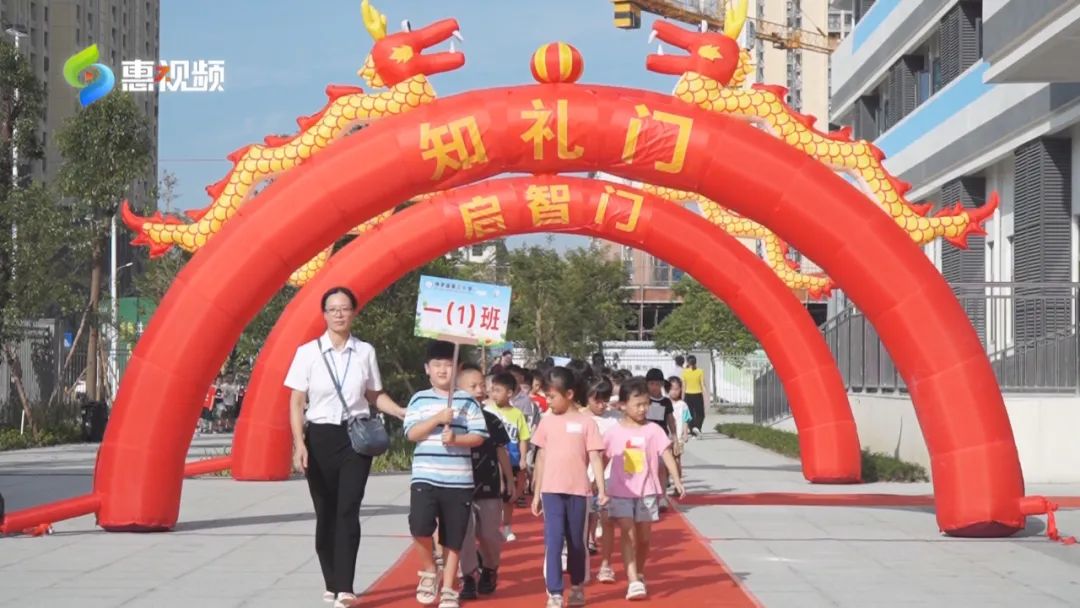 為了歡迎新一批萌娃入學(xué),一些學(xué)校為孩子們準(zhǔn)備了兼具趣味和意義的歡迎儀式。在惠城區(qū)鴻昌小學(xué)和博羅縣第三小學(xué),學(xué)生們和家長代表列隊走過“啟智門”和“知禮門”進(jìn)入現(xiàn)場,小朋友的身份從幼童正式轉(zhuǎn)變?yōu)橐幻W(xué)生。