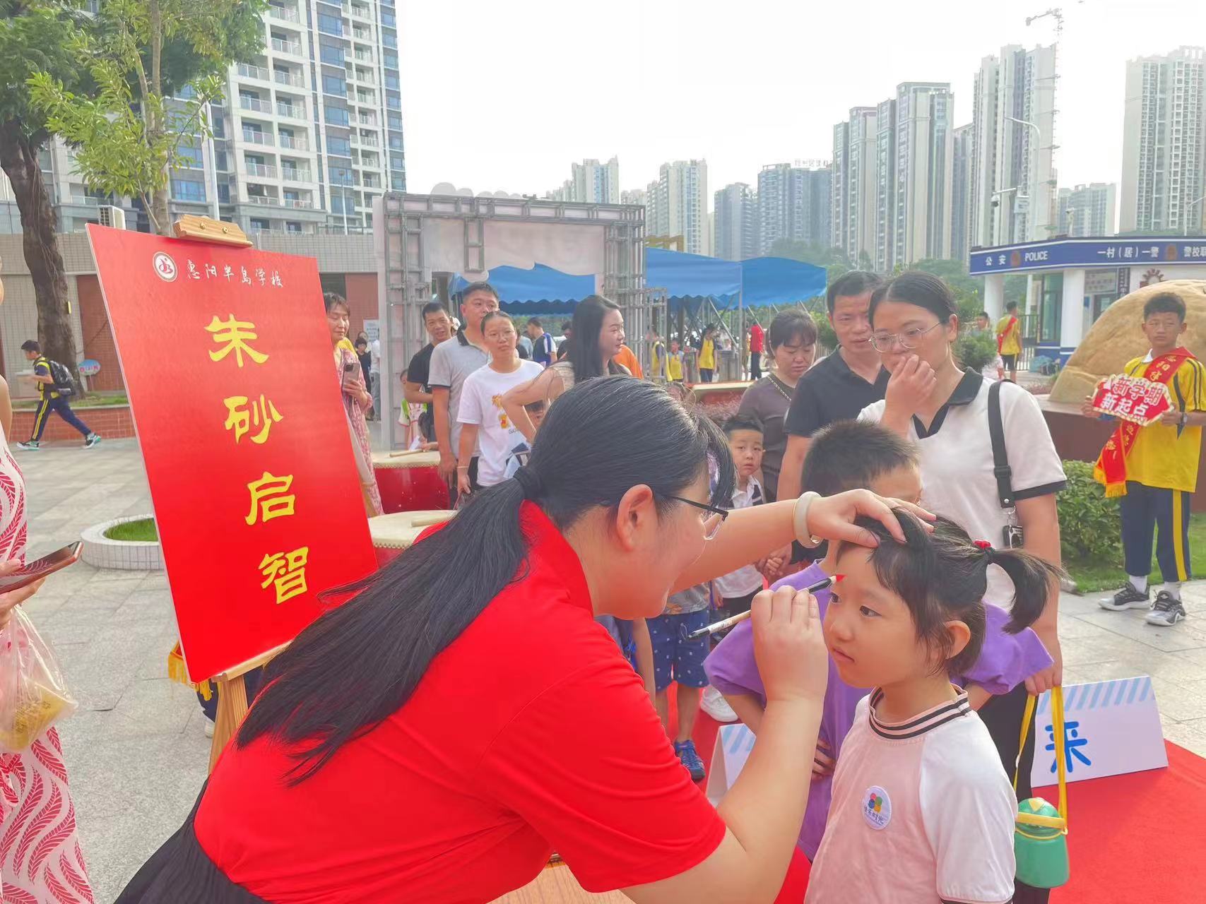 9月4日上午,惠陽半島學(xué)校舉行了以“加油開學(xué)季,筑夢向未來”為主題的新生入學(xué)儀式。學(xué)校為孩子們設(shè)置了“向陽生長”“筑夢未來”“心向未來”字樣的跨欄,每個(gè)跨欄以及水果代表著學(xué)校對孩子們的美好祝愿,希望他們光芒初綻,一步一個(gè)腳印,奔赴燦爛前程。跨欄之后就是擊鼓明志,每一聲鼓聲都孕育著一個(gè)嶄新的希望,這一儀式飽含著惠陽半島學(xué)校對孩子們的殷切期望,望其目明耳聰、茅塞頓開、創(chuàng)業(yè)建功。額點(diǎn)朱砂,啟蒙開智。在朱砂點(diǎn)痣環(huán)節(jié),老師們在每一個(gè)孩子的眉心點(diǎn)上一顆朱砂痣,寓意打開了稚童們的求學(xué)之門、鋪砌了人生的行走之路。學(xué)校特意設(shè)置了新生拍照打卡點(diǎn),孩子們有序地打卡拍照,留下一張張開心的笑臉,記錄下進(jìn)入小學(xué)的美好瞬間。