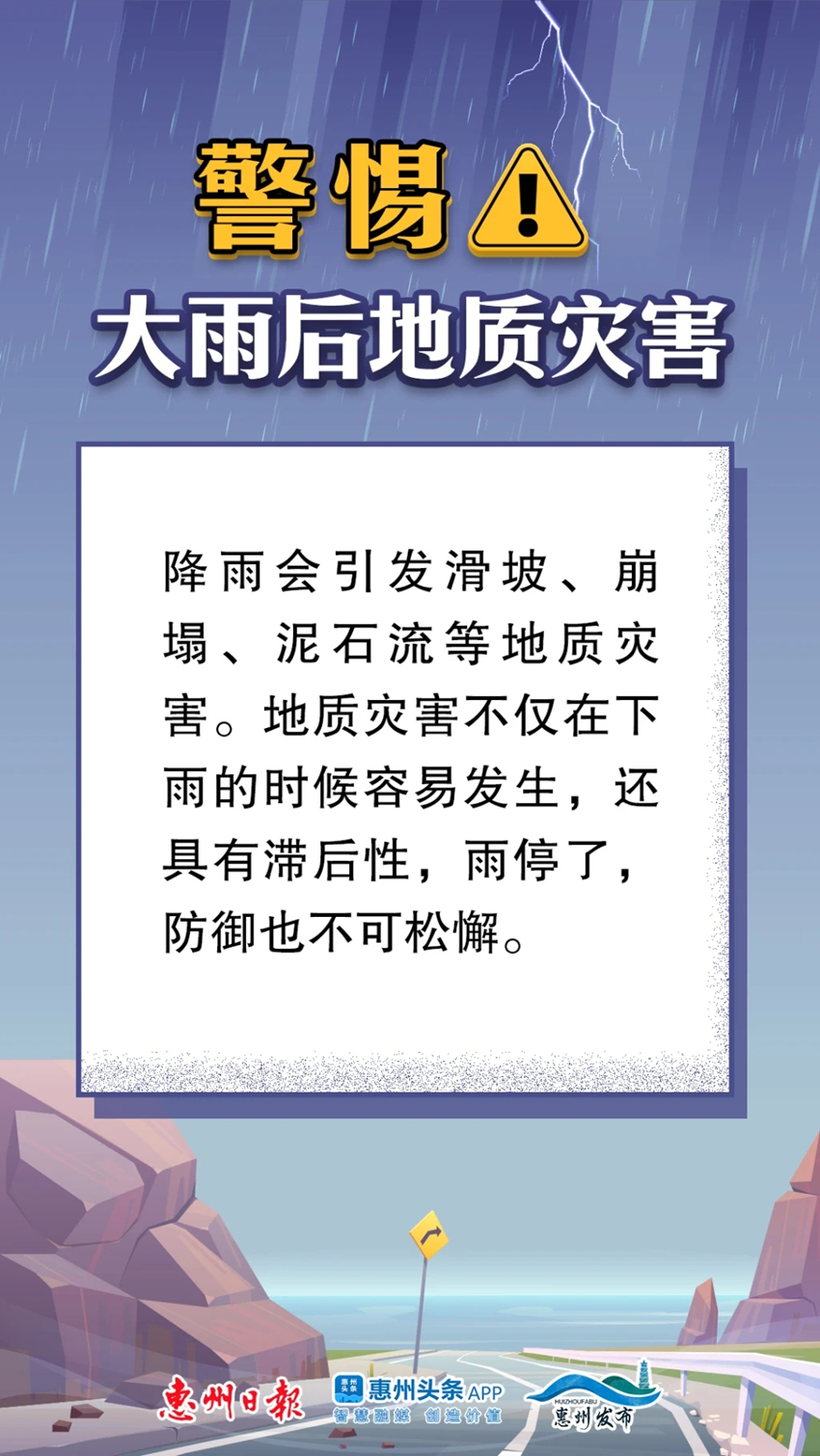 前期我市已出現(xiàn)大范圍強降水,土壤含水量大,預(yù)計7日夜間到8日我市仍有大雨到暴雨局部大暴雨,市自然資源局和市氣象局7日17時將地質(zhì)災(zāi)害氣象風險升級為三級,并提醒:地質(zhì)災(zāi)害具有滯后性,發(fā)生風險仍然較高,請加強組織地質(zhì)災(zāi)害隱患點(風險點)巡查和24小時值班值守,做好避讓工作。若出現(xiàn)人員傷亡,要及時報告當?shù)卣⒆匀毁Y源部門和應(yīng)急部門,并撥打市自然資源局汛期地質(zhì)災(zāi)害值班電話0752-2896316速報災(zāi)情。