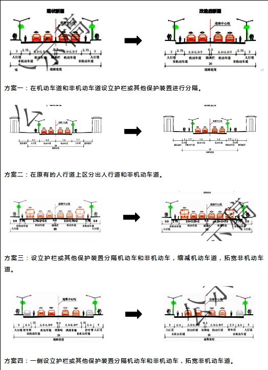 代表性的標(biāo)準(zhǔn)路段四種改造方案也對應(yīng)出爐