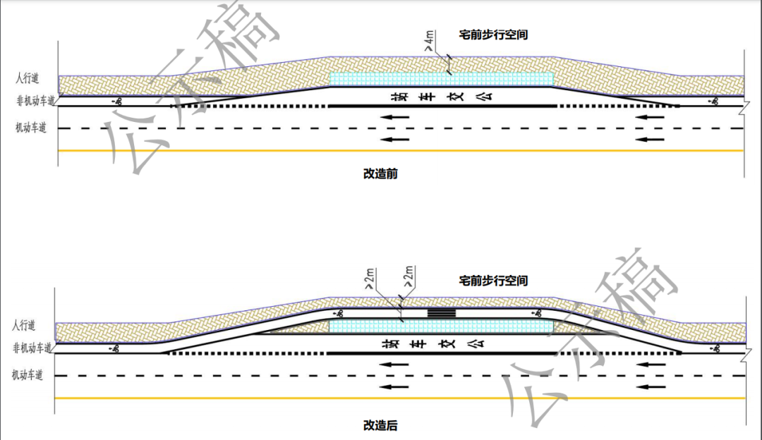 而公交停靠站點(diǎn),也規(guī)劃新增一條完整的非機(jī)動車道供非機(jī)動車通行。