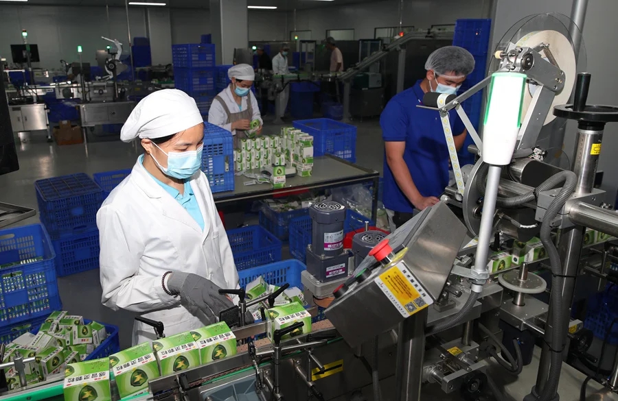 “噠、噠、噠……”新峰藥業(yè)生產(chǎn)車間內(nèi)一片繁忙,一包包感冒靈顆粒在生產(chǎn)線上被分裝、打包。在這條生產(chǎn)線上,大約10名工人一天就能分裝打包生產(chǎn)33.6萬多盒感冒靈顆粒,相當(dāng)于月產(chǎn)約900萬盒。