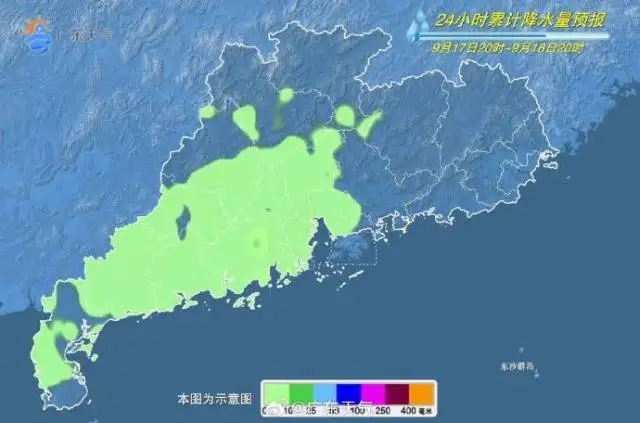 20日,廣東省大部晴天間多云,午后局地有分散(雷)陣雨。