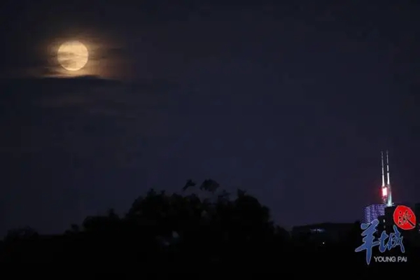 資料圖:月亮透過云層出現(xiàn)在廣州夜空。羊城晚報(bào)全媒體記者 梁懌韜 攝