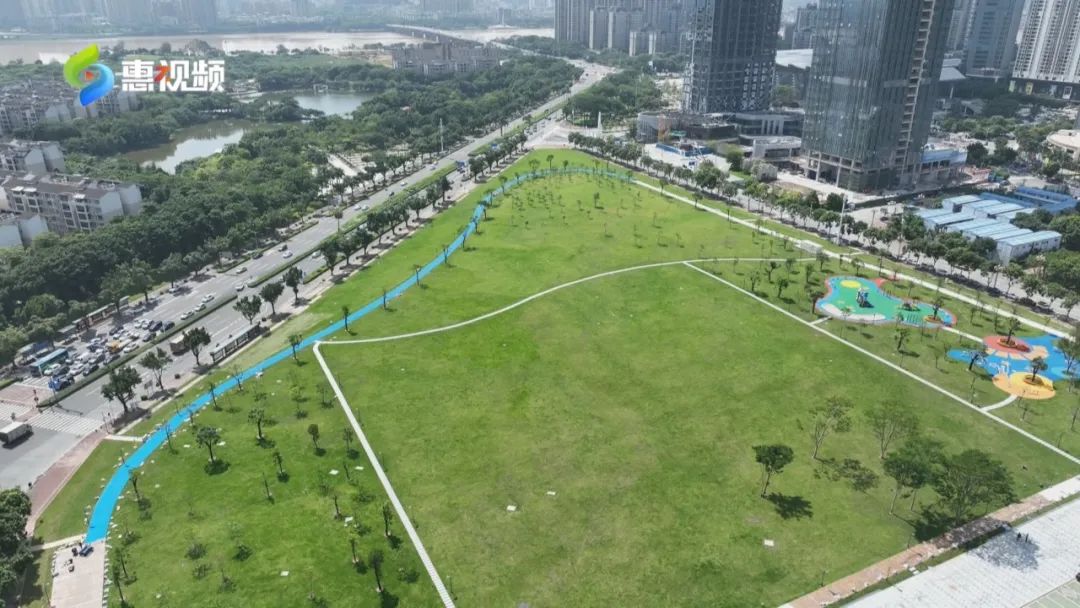 記者在現(xiàn)場了解到,目前惠州市民樂園二期改造基本完成,一直空置的地塊煥然一新,6.3萬多平米的草坪綠意盎然,仿佛一張巨大的地毯,靜待市民前來踏青、休閑。色彩鮮艷的塑膠跑道,環(huán)繞在草坪的周邊,在蔥郁樹叢中延伸。