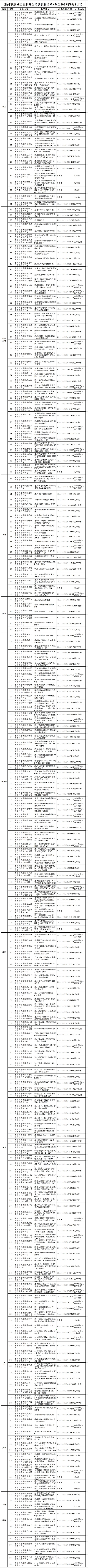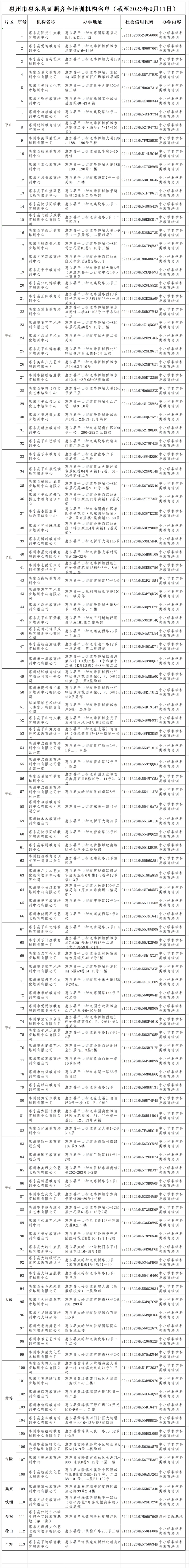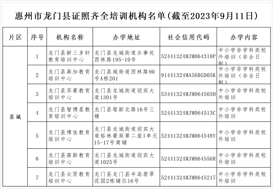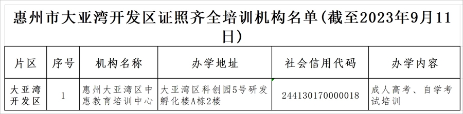 為進一步鞏固我市“雙減”工作成果,方便廣大學(xué)生及家長查詢和選擇合法合規(guī)教育培訓(xùn)機構(gòu),9月18日,惠州市教育局發(fā)布《關(guān)于公布惠州市證照齊全培訓(xùn)機構(gòu)名單的公告》,公布我市由教育行政部門審批監(jiān)管的證照齊全培訓(xùn)機構(gòu)名單(截至2023年9月11日)。