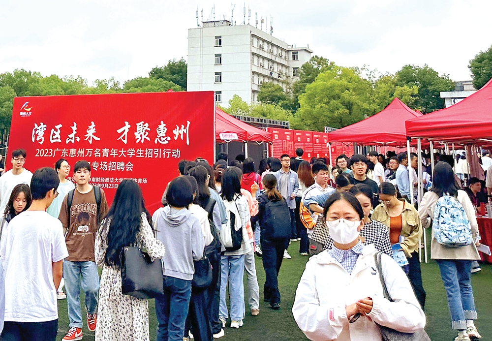 惠州日報訊 (記者駱國紅 通訊員夏海濱)為深入實施人才強市戰(zhàn)略,吸引更多優(yōu)秀青年人才來惠州就業(yè)創(chuàng)業(yè),9月21日至24日,由市委組織部、市人社局聯合市教育局、市衛(wèi)健局主辦的“灣區(qū)未來,才聚惠州”2023廣東惠州萬名青年大學生招引行動武漢專場招聘會分別在湖北工業(yè)大學、武漢工程大學、中南財經政法大學和湖北大學舉行。此次招聘活動共有148家企事業(yè)單位參加,提供近7000個崗位,吸引了超萬名武漢高校畢業(yè)生參加,收到簡歷7200余份,其中,4500余人現場達成就業(yè)意向。