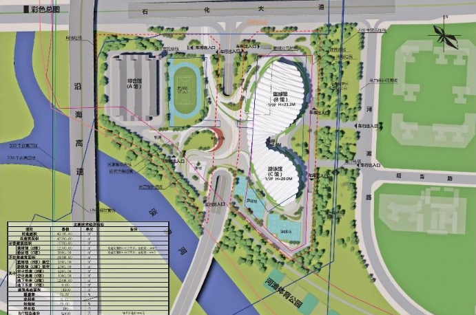 3.新建游泳館(C館):按國標(biāo)丙級體育館設(shè)計(jì)標(biāo)準(zhǔn)建設(shè),館內(nèi)設(shè)置標(biāo)準(zhǔn)游泳比賽池。