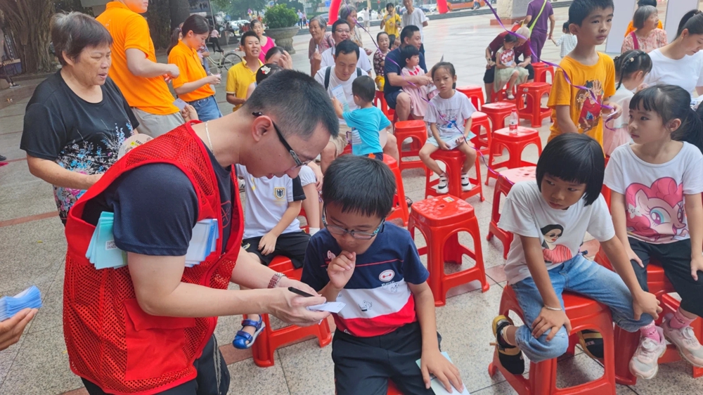 出發(fā)前,在場市民紛紛為小朋友們助威,比賽開始后,濱江公園南廣場的主會場設(shè)立了實時視頻連線,可以觀看參賽小朋友完成任務(wù)的情況。