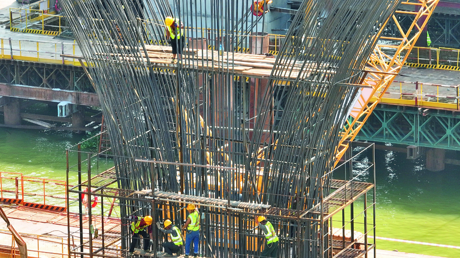 塔吊林立,車輛穿梭,機械轟鳴,穿著反光背心頭戴安全帽的工人們在腳手架之間忙活……中秋國慶假期,鵝城大橋項目建設(shè)如火如荼。為了安全高效地完成鵝城大橋建設(shè)任務(wù),中秋國慶假期,項目一線作業(yè)人員放棄休息堅守崗位。